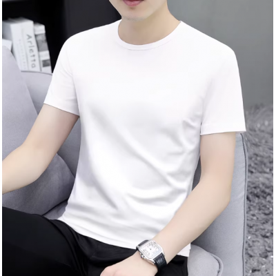 男士短袖t恤2025新款夏季白色圆领纯色简约百搭体恤半袖打底上衣