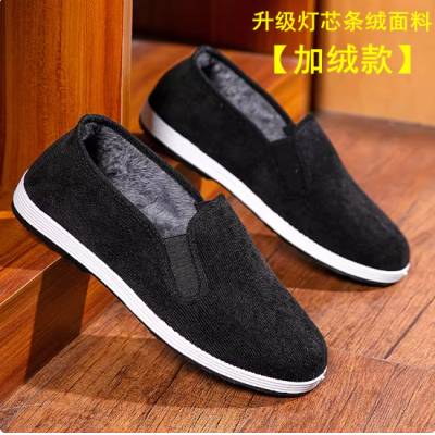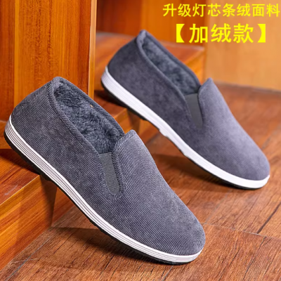 冬季老布鞋男棉鞋保暖工作鞋男休闲一脚蹬加绒软底男鞋开车鞋